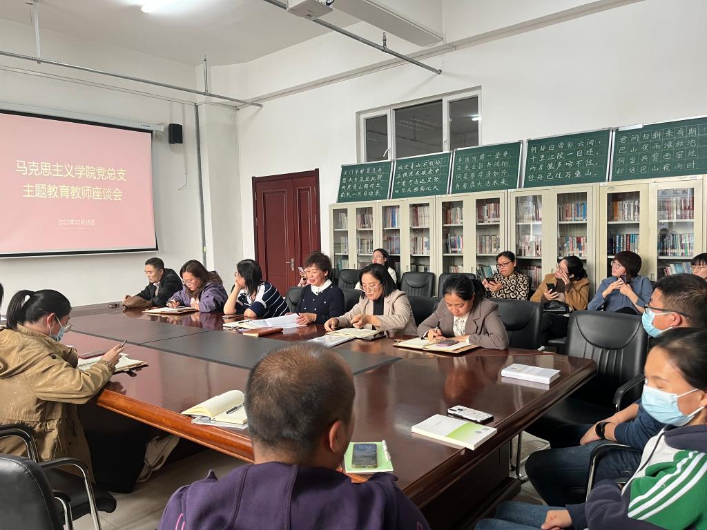 为推动学习贯彻习近平新时代中国特色社会主义思想主题教育走深走实,推动全体党员当好贯彻落实习近平新时代中国特色社会主义思想的执行者、行动派、实干家,10月18日下午suncitygroup太阳新城官网党总支在崇文楼B座123会议室召开主题教育教师座谈会,学院全体教师参加会议。