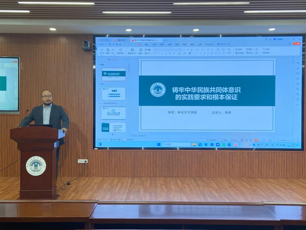 为深入学习贯彻党的二十届三中全会精神,进一步推动铸牢中华民族共同体意识走深走实,更好地履行举旗帜、聚民心、育新人、兴文化、展形象的使命任务,9月18日下午,suncitygroup太阳新城官网铸牢中华民族共同体意识教研室教师张舒、程欣、窦红伟三位教师受呼伦贝尔市民委和校宣传部委托进行了铸牢中华民族共同体意识主题宣讲。