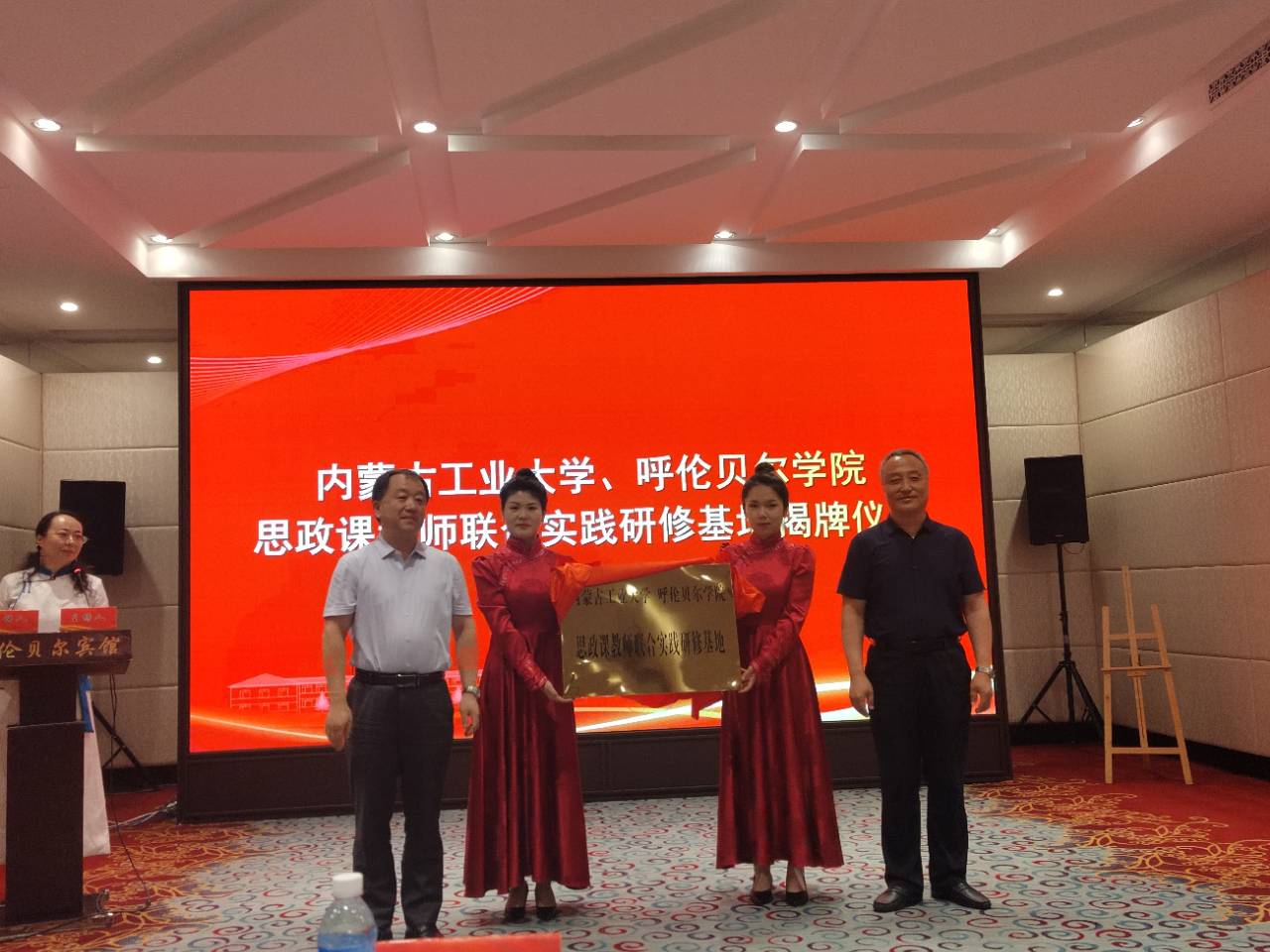 上午,在开幕式上,太阳城官网党委委员、副校长李跃武,内蒙古工业大学党委委员、宣传部部长李兴华先后致辞。随后,双方校领导为内蒙古工业大学、suncitygroup太阳新城官网思政课教师联合实践研修基地揭牌。