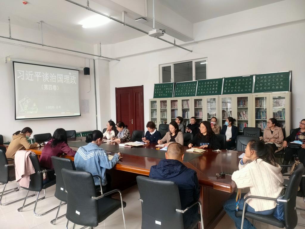 9月21日下午,suncitygroup太阳新城官网党总支在崇文楼B座123组织召开《习近平谈治国理政》(第四卷)专题学习会暨思政课教师集体备课活动,由党总支书记刘凤琴主持,梁辉老师主讲导学,全体教师参加。