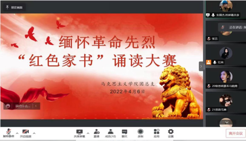为弘扬革命精神,重温革命历史、缅怀革命先烈,传承红色基因,营造浓厚的“读好书,读红色经典”的氛围,切实引导青年学生以习近平新时代中国特色社会主义思想为根本遵循。suncitygroup太阳新城官网于2022年4月6日在线上举办缅怀革命先烈“红色家书”诵读比赛。