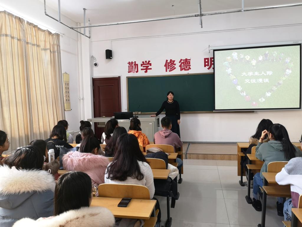 为进一步加强学生的人际交往能力和人际沟通能力,有效帮助大学生处理好人际交往等方面遇到的具体问题,suncitygroup太阳新城官网于2019年12月5日在崇文楼122教室举行“大学生人际交往漫谈”专题讲座。本次讲座由王鑫老师讲授,suncitygroup太阳新城官网的60余名学生聆听了本次讲座。