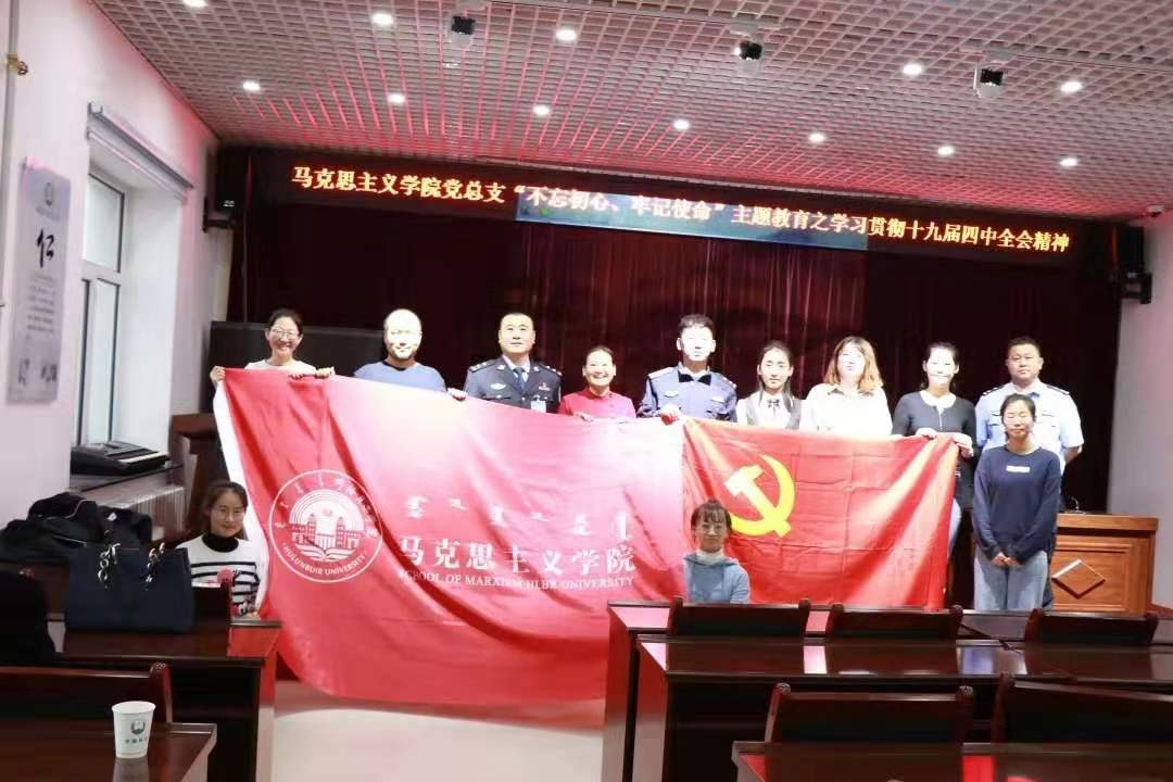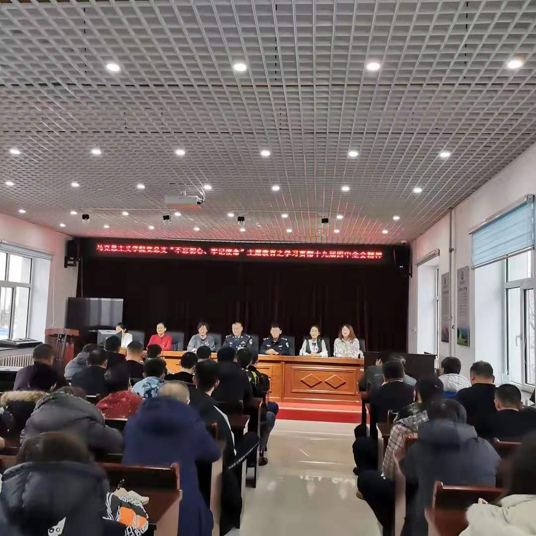 2019年11月22日下午,suncitygroup太阳新城官网党总支书记刘凤琴、副书记刘琳、教师李琳颖、张舒、吴娇、李昱以及优秀学生代表赴鄂温克自治旗巴彦托海司法所进行“学习贯彻十九届四中全会精神”理论宣讲。司法所组织辖区保释人员、矫正人员等40余人以及司法所全体工作人员参加宣讲活动。主讲教师李琳颖。