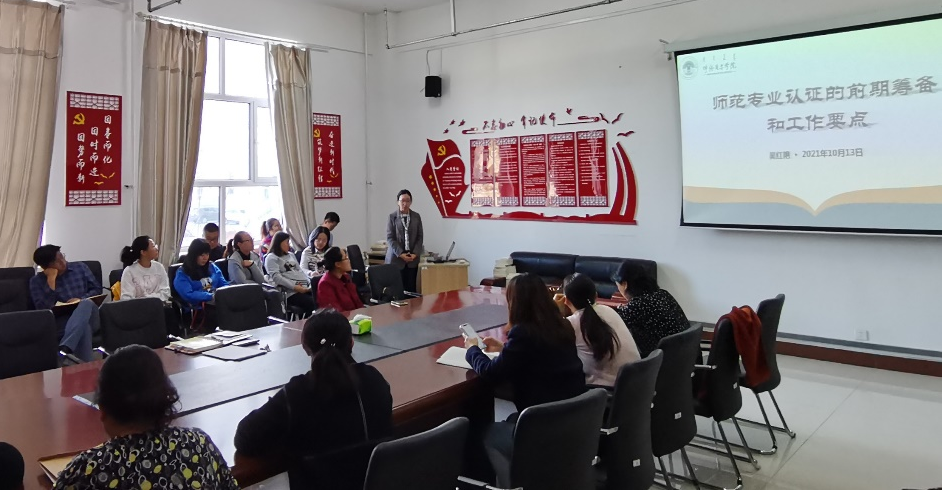 10月13日下午,suncitygroup太阳新城官网在崇文楼B123会议室召开师范专业认证主题学习会。数学与统计学院的吴红艳老师莅临我院对师范专业认证的前期筹备和工作要点进行指导。suncitygroup太阳新城官网全体教师参加会议,学院副院长吴秀芳主持会议。