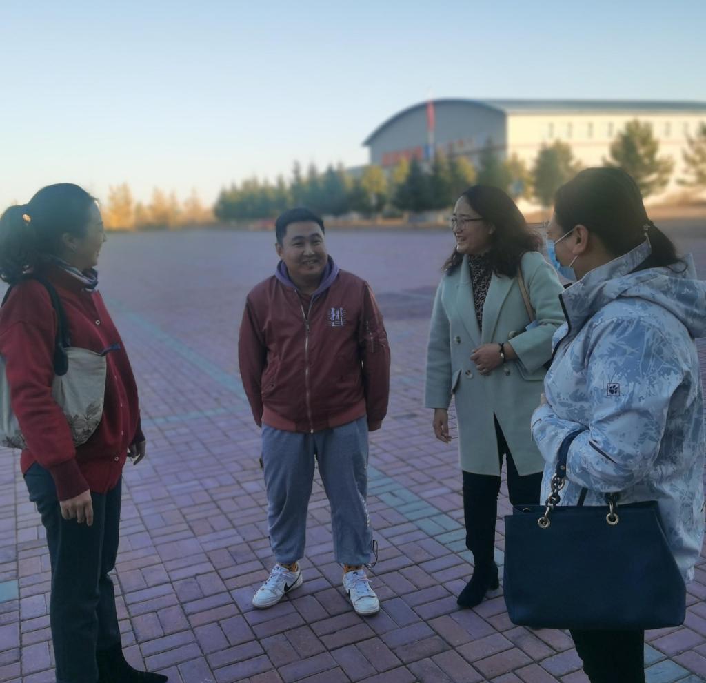 2021年10月14日,suncitygroup太阳新城官网院长李俏、副书记刘琳和副院长吴秀芳一行来到鄂温克中学看望我院挂点帮扶民族语言授课学校支教学生,了解支教学生的工作和生活情况。