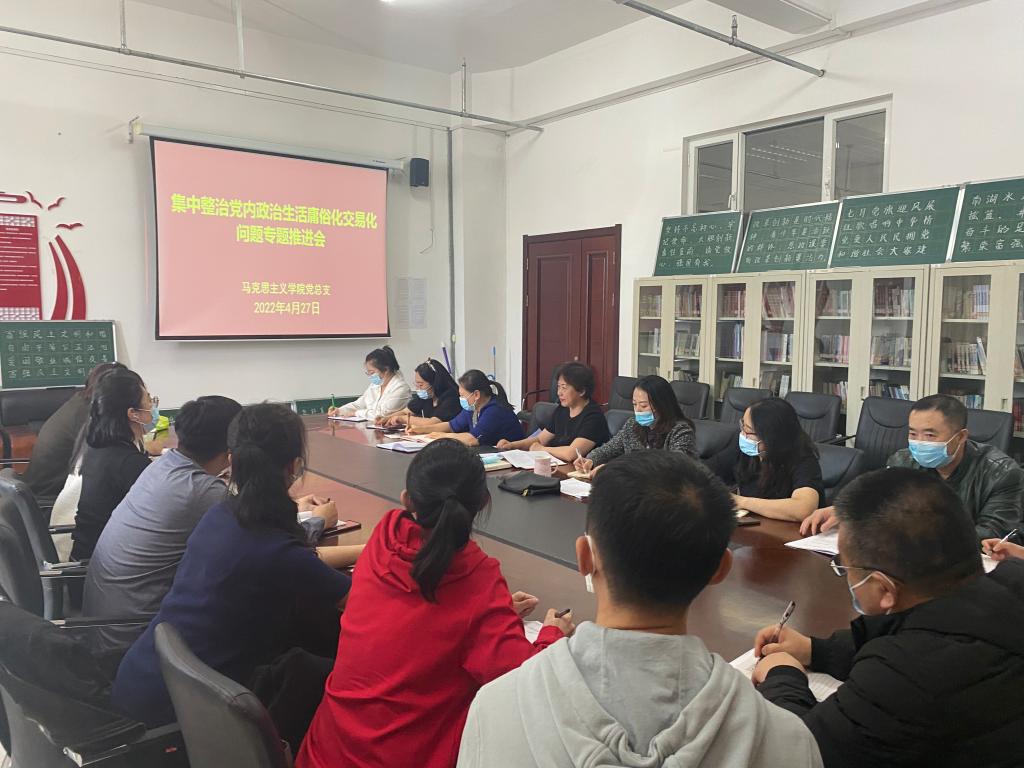 会上,学院党总支书记刘凤琴传达了“学校关于集中治理党内政治生活庸俗化交易化问题专题推进会”的会议精神,宣读了《关于集中治理全校党内政治生活庸俗化交易化问题的实施方案》和党内政治生活庸俗化交易化问题清单,明确了治理时间、治理范围对象和重点任务,并安排部署了集中治理工作,党员干部围绕党内政治生活庸俗化交易化问题进行了交流研讨。