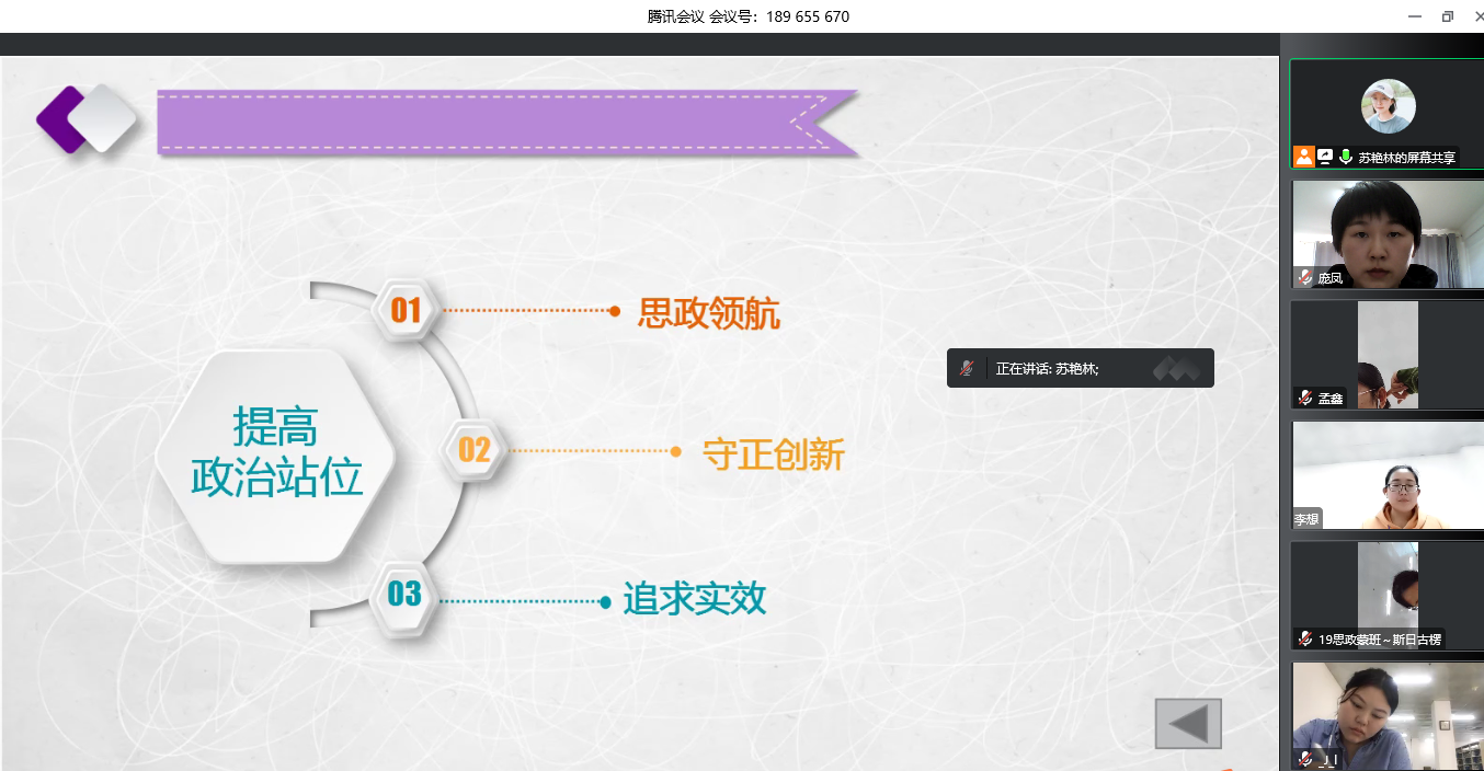 为了更好适应教育部师范类专业认证的新要求,进一步加强专业建设,suncitygroup太阳新城官网组织开展“中学政治教师素质养成”系列讲座。首期于9月24日开讲,邀请到鄂尔多斯市东胜区教学基本功竞赛(中学政治组)一等奖苏艳林老师为我院学生作“上好思政课,做好引路人”线上主题讲座。讲座由suncitygroup太阳新城官网庞凤老师主持,学院全体学生在线参加。