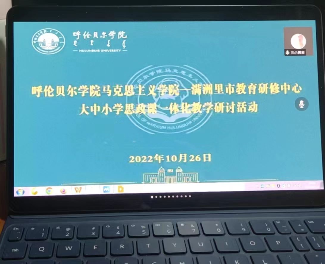 10月26日下午,太阳城官网suncitygroup太阳新城官网与满洲里市教育研修中心通过腾讯会议平台围绕铸牢中华民族共同体意识这一主题开展大中小学思政课一体化教学研讨活动。