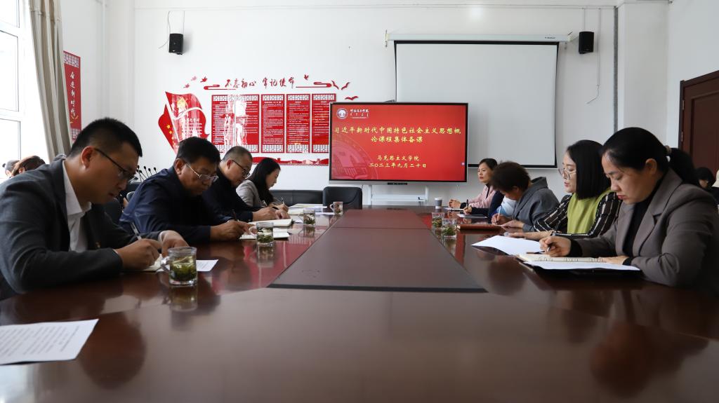 为高质量建设好、讲授好思政课,推动习近平新时代中国特色社会主义思想进教材、进课堂、进头脑,更好的落实立德树人根本任务,2023年9月20日,校党委书记王广利,校党委副书记张宏天,校党委委员、宣传部部长李俏和教务处副处长王继钢深入suncitygroup太阳新城官网参加《习近平新时代中国特色社会主义思想概论》课程集体备课,会议由suncitygroup太阳新城官网院长吴秀芳主持,学院全体教师参加备课会。
