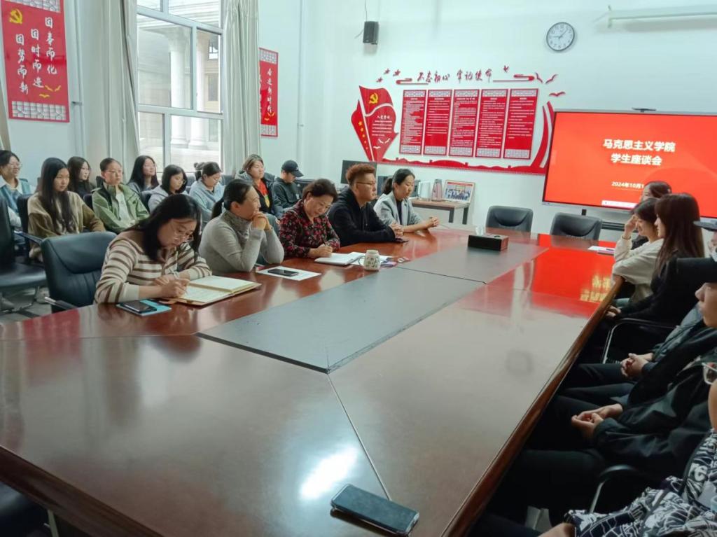 为进一步加强学生教育与管理,有效提升学生教育管理水平,及时准确了解学生的学习生活情况和思想动态,10月14日,suncitygroup太阳新城官网在崇文楼B123室召开2024级学生座谈会。学院党总支书记刘凤琴、副书记刘琳,思想政治教育系主任魏婉莹、团学办公室副主任查娜、辅导员齐宸以及2024级40余名新生参加了座谈会。