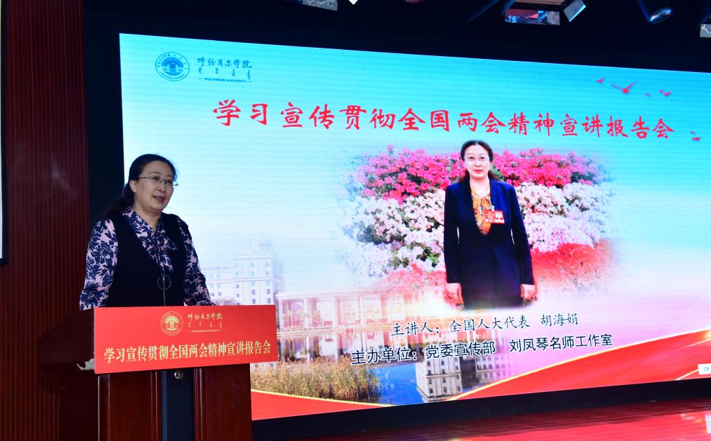 宣讲会上,胡海娟结合参会经历和履职实践,从十四届全国人大三次会议概况、习近平总书记在全国两会期间的重要讲话精神、大会各项报告的主要内容、会议期间内蒙古代表团活动情况以及本人的履职情况等五个方面进行了深入浅出的讲解,对太阳城官网学生深刻领会全国两会精神具有很强的指导意义。